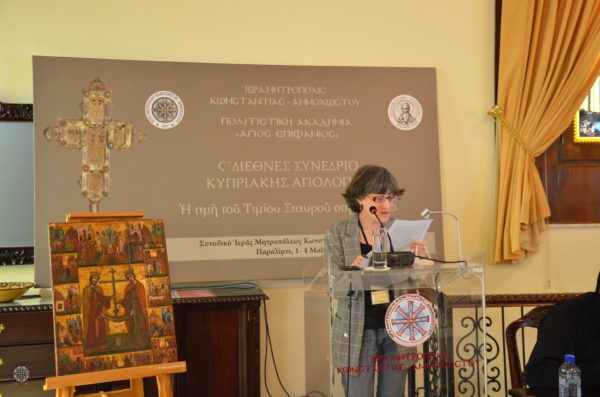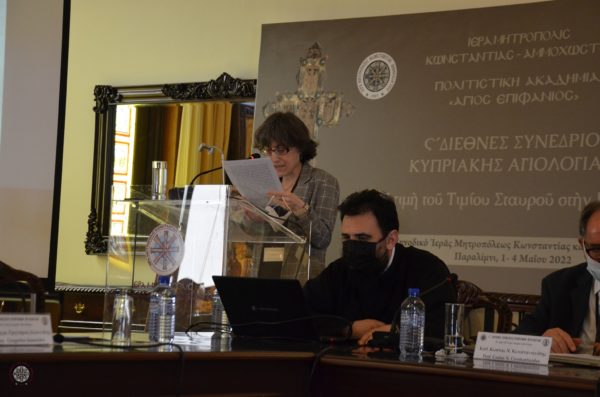 Τέλος, η Εκτελεστική Διευθύντρια της Πολιτιστικής Ακαδημίας «Άγιος Επιφάνιος» Διδάκτωρ Φιλοσοφίας, Βυζαντινολόγος. της Ιερατικής Σχολής «Απόστολος Βαρνάβας» Εκκλησίας Κύπρου, έκανε μια ιστορική αναδρομή του Τιμίου Σταυρού στην Κύπρο μέσα από χρονογραφικές, ιστοριογραφικές και περιηγητικές πηγές.