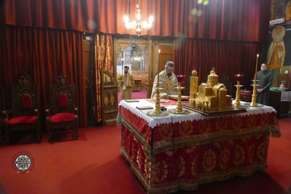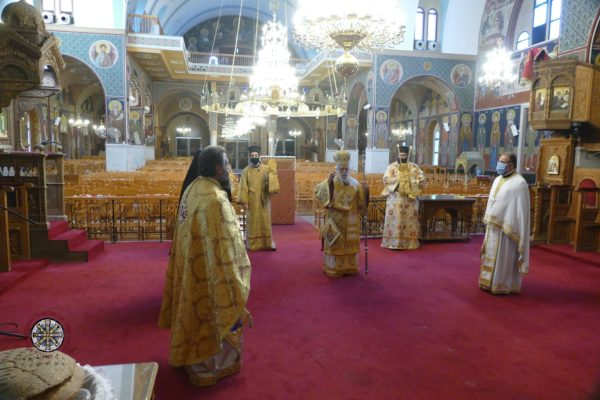 Φέτος, λόγω των ιδιάζουσων συνθηκών, ο Πανιερώτατος προέστη ως είθισται της Πρωτοχρονιάτικης Θείας Λειτουργίας στον Μητροπολιτικό Ιερό Ναό του Αγίου Γεωργίου στο Παραλίμνι, με τη συμμετοχή περιορισμένου αριθμού κληρικών και χωρίς την παρουσία πιστών εντός του ναού αφού αυτή απαγορεύεται με βάση το σχετικό διάταγμα.