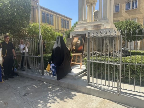 Ακολούθησε Τρισάγιο, στον περίβολο ανατολικά της Εκκλησίας, όπου ευρίσκεται το Μαυσωλείο των Εθνομαρτύρων.