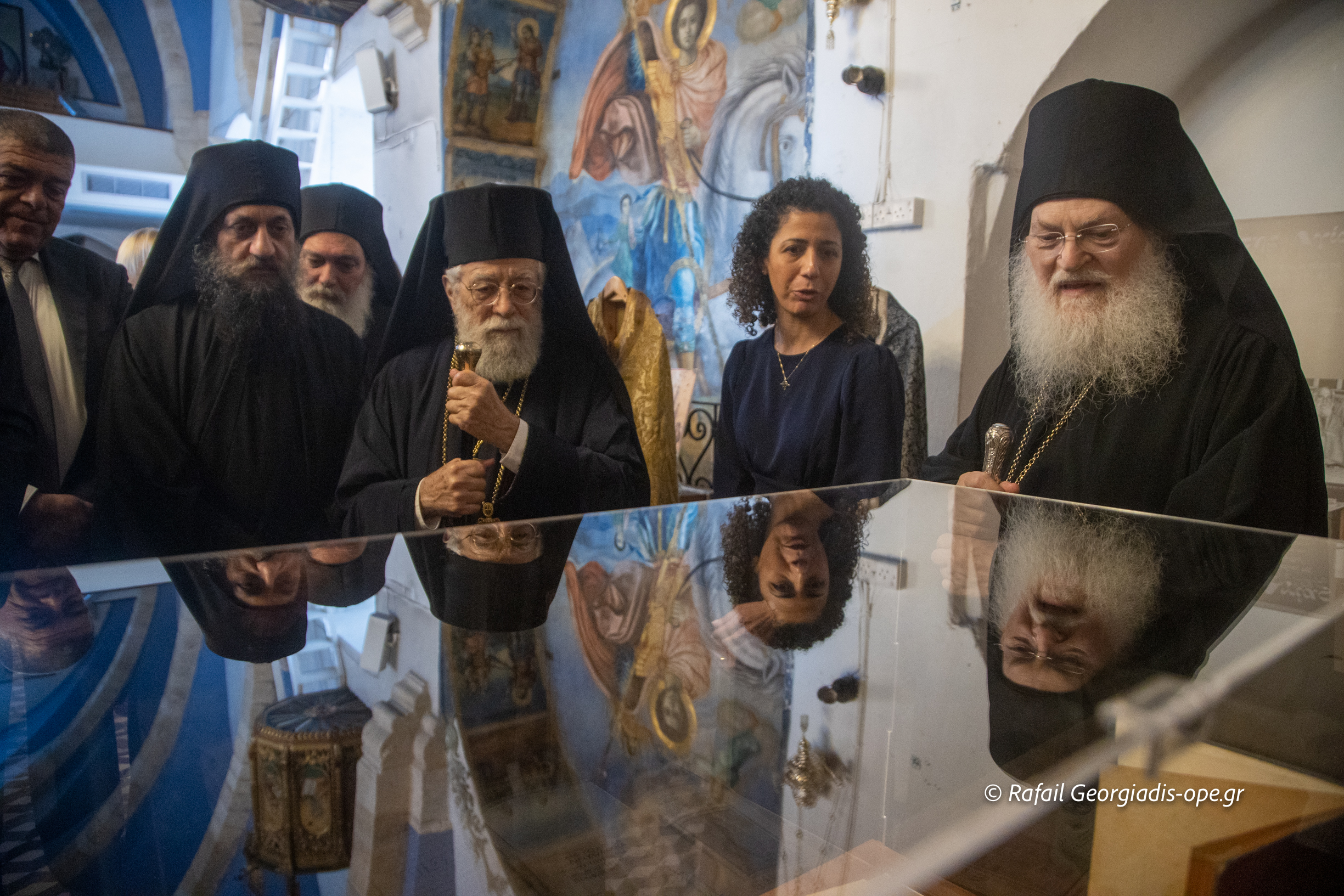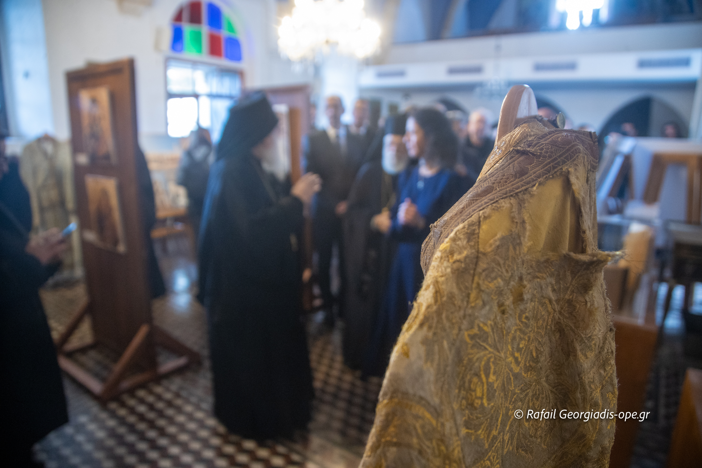 Έπειτα από την επίσημη υποδοχή της Αγίας Ζώνης ο Πανιερώτατος Μητροπολίτης Κωνσταντίας και Αμμοχώστου κ. Βασίλειος μαζί με τον Γέροντα Εφραίμ και την συνοδεία του ξεναγήθηκαν στην έκθεση «Αγία Ζώνη Βαρωσίων. 50 χρόνια μετά» η οποία πραγματοποιείται και με αφορμή την έλευση της Τιμίας Ζώνης της Θεοτόκου από την Ιερά Μεγίστη Μονή Βατοπαιδίου Αγίου Όρους στην ημικατεχόμενη Μητρόπολη Κωνσταντίας και Αμμοχώστου (5-11 Φεβρουαρίου 2024).