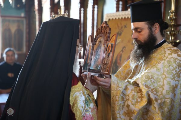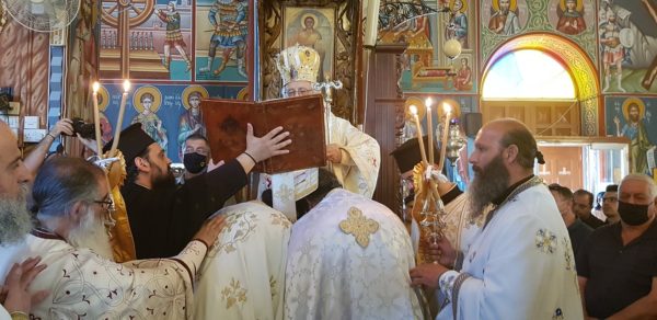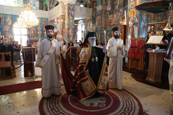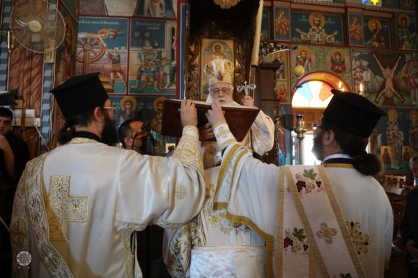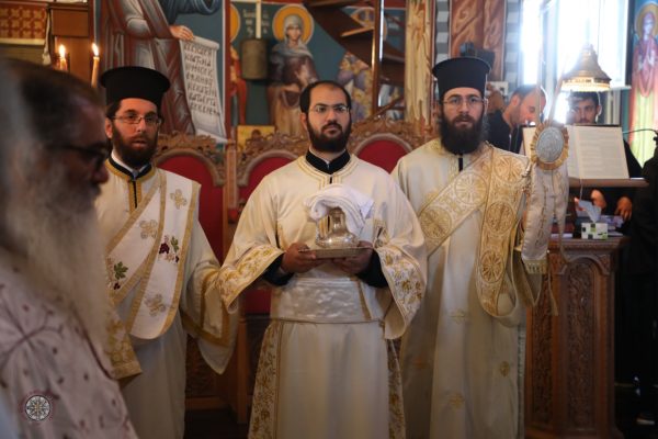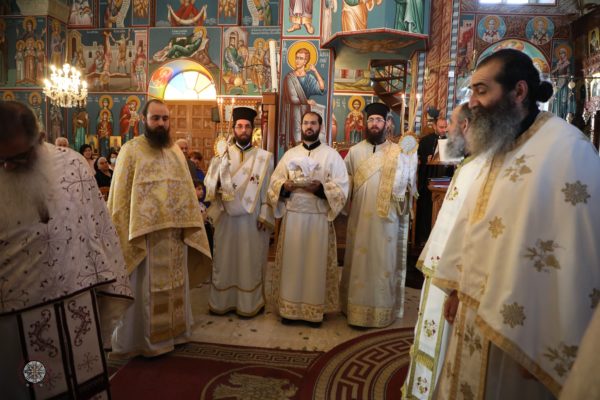 Στο τέλος της Θείας Λειτουργίας, ο Πανιερώτατος απένειμε το οφίκκιο του Οικονόμου στους δύο εφημερίους του ιερού ναού.