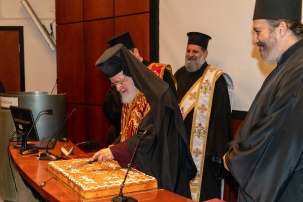Την Βασιλόπιτα ευλόγησε και έκοψε ο της του Κύκκου Σεπτός Ποιμενάρχης κ. Νικηφόρος, ο οποίος στη συνέχεια απηύθυνε εόρτιες ευχές και πνευματικές προτροπές προς τους φοιτητές και με τον βαθύ και μεστό αγιοπατερικό του λόγο ανέλυσε την έννοια και τη σημασία της Θεολογίας για την Εκκλησία και την κοινωνία των ανθρώπων.