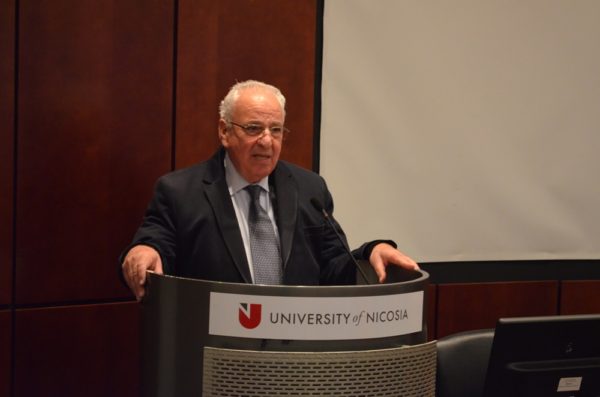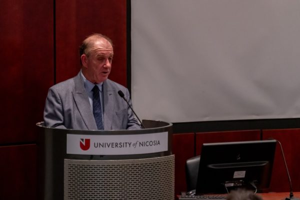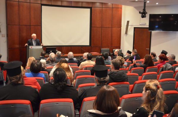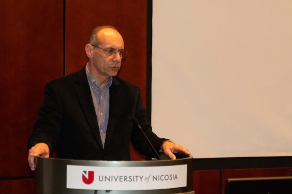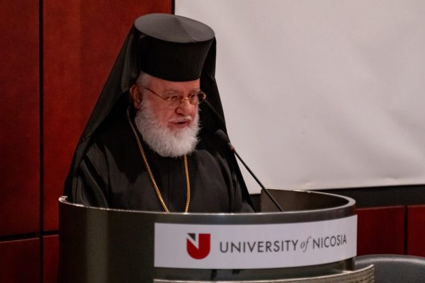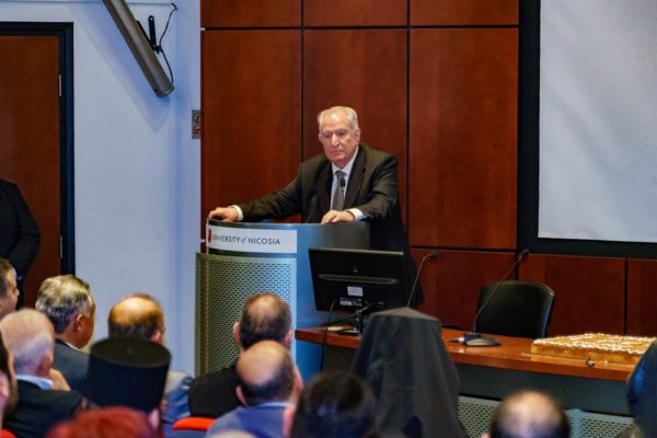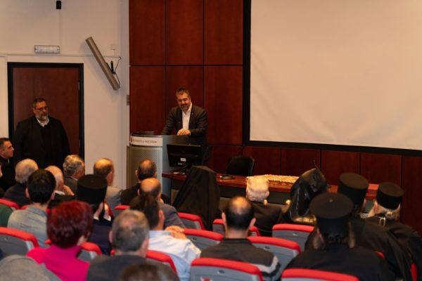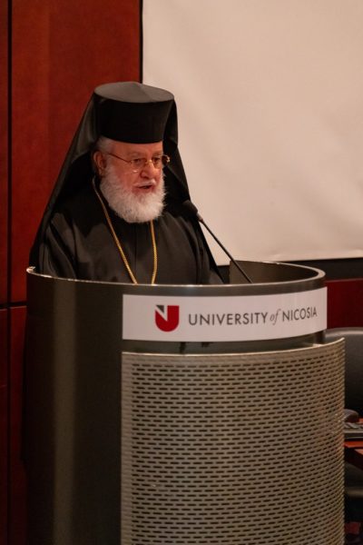 Χαιρετίζοντας την εκδήλωση ο Πρύτανης του Πανεπιστημίου Λευκωσίας Καθηγητής Φίλιππος Πουγιούτας, ευχαρίστησε τον Μητροπολίτη Κύκκου και Τηλλυρίας κ. Νικηφόρο για την παρουσία του, αλλά και για την διαρκή στήριξή του στο Τμήμα Θεολογίας, αλλά και το Πανεπιστήμιο Λευκωσίας. Ευχαριστίες εξέφρασε και στον Μητροπολίτη Λεμεσού για την στήριξή του, επίσης, με το Κέντρο Μάθησης, το οποίο διατηρεί το Τμήμα στην Λεμεσό.