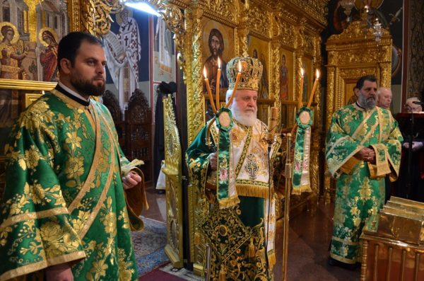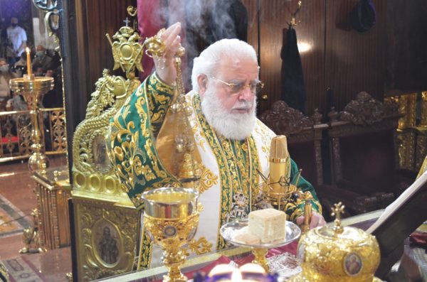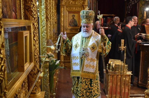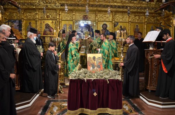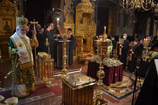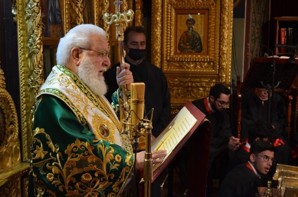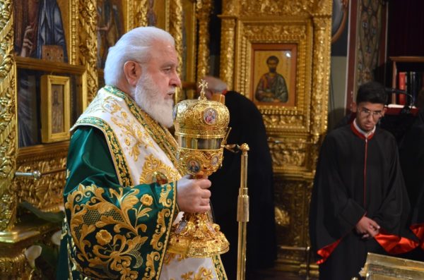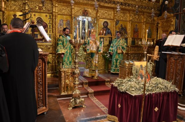 Της Αρχιερατικής θείας Λειτουργίας, στην οποία πληθωρική ήταν η συμμετοχή των πιστών, προεξήρχε ο Πανιερώτατος Μητροπολίτης Κύκκου και Τηλλυρίας κ. Νικηφόρος, πλαισιούμενος από Πατέρες της Μονής, ιερείς και διακόνους της Μητροπόλεως.