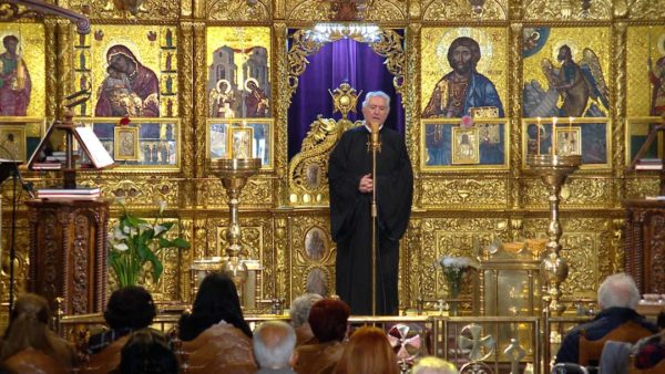 Ο ελλογιμώτατος Καθηγητής λαμβάνοντας αφορμή από τη σημερινή Ευαγγελική περικοπή της θεραπείας, από τον Κύριο μας, του δαιμονιζομένου νέου, αλλά και από την Κλίμακα, του τιμωμένου κατά την Δ΄ Κυριακή των Νηστειών αγίου Ιωάννου του Σιναΐτου, παρουσίασε στο πολυπληθές εκκλησίασμα, την ανηφορική και σταυρική πορεία την οποία θα πρέπει να ακολουθήσουμε για να ανέλθουμε, δια της επιγείου, εις την άνω Ιερουσαλήμ.