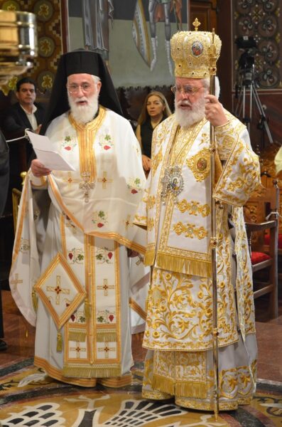 Τους ύμνους και αίνους της Εορτής με τα μεγάλα και σωτήρια νοήματα απέδωσαν θαυμάσια οι ιεροψάλτες του πολυμελούς βυζαντινού χορού της Ιεράς Μονής Κύκκου υπό τη διεύθυνση των Άριστου Θουκυδίδη και Νίκου Παναγιώτου.