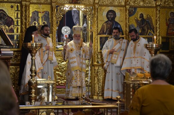 Μετά το πέρας της θείας Λειτουργίας ο Πανιερώτατος προέστη της ακολουθίας του Εσπερινού της εορτής του Αγίου Πνεύματος και ανέπεμψε τις πρώτες ευχές της γονυκλισίας. Τις υπόλοιπες ευχές ανέγνωσαν οι Αρχιμανδρίτες Ιερώνυμος Πυλιώτης και Αμφιλόχιος Κυκκώτης και ο Πρωτοπρεσβύτερος Άγγελος Ζλάτεβ.