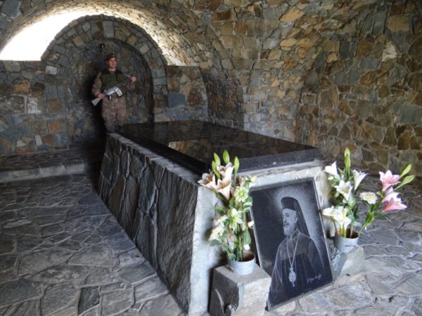 Τον χώρο επέλεξε και ο πρώτος Πρόεδρος της Κυπριακής Δημοκρατίας αρχιεπίσκοπος Μακάριος Γ’ (1950-1977), για να κατασκευασθεί ο τάφος του. Πρόκειται για ημιυπόγειο θολωτό οικοδόμημα έργο του αρχιτέκτονα Ανδρέα Φιλίππου (1977), ο οποίος βρίσκεται λίγα μέτρα χαμηλότερα στα βόρεια του Θρονιού. Την ίδια χρονιά (1977) έγινε ανάπλαση στο Θρονί της Παναγίας.