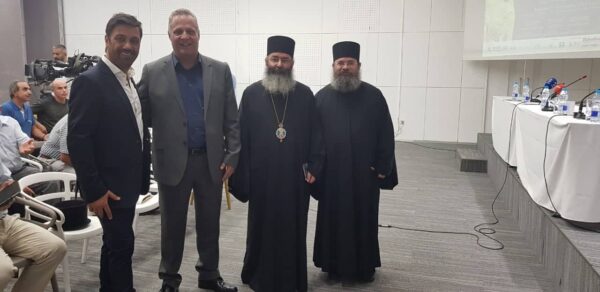 Στη Δημοσιογραφική διάσκεψη παρευρέθηκαν μεταξύ άλλων ο Πανιερώτατος Μητροπολίτης Κιτίου κ. Νεκτάριος και ο Έντιμος Υπουργός Παιδείας και Πολιτισμού κ. Κώστας Χαμπιαούρης.