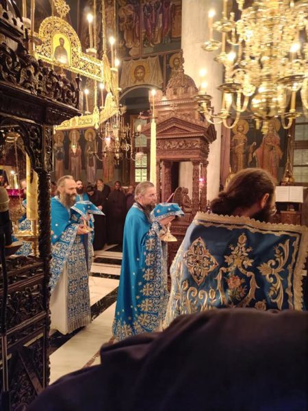 Με τον Πανιερώτατο συλλειτούργησαν, το βράδυ της Παρασκευής 26 Αυγούστου, ο Θεοφιλέστατος Επίσκοπος Αμαθούντος κ. Νικόλαος, ο Καθηγούμενος της Ιεράς Μονής Μαχαιρά Θεοφιλέστατος Επίσκοπος Λήδρας κ. Επιφάνιος, ο Καθηγούμενος της Ιεράς Μονής Τιμίου Προδρόμου Μέσα Ποταμού Αρχιμ. Παΐσιος και αρκετοί ιερείς και διάκονοι από άλλες Μονές και διάφορες Μητροπόλεις. Η συμμετοχή πιστών ήταν αθρόα.