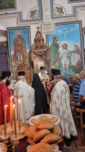 Ο Θεοφιλέστατος Επίσκοπος Αμαθούντος κ. Νικόλαος χοροστάτησε του πανηγυρικού Εσπερινού στον ναό του Τιμίου Προδρόμου στην κοινότητα του Λουβαρά. Στο τέλος του Εσπερινού χειροθέτησε σε αναγνώστη κ. Αλέξιο Τύχωνοφ. Ανήμερα της εορτής λειτούργησε στον εορτάζοντα ναό στην κοινότητα Δύμες.