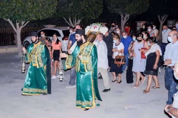 Στις Ιερές Ακολουθίες προεξήρχε ο Θεοφιλέστατος Επίσκοπος Αμαθούντος κ. Νικόλαος. Προ της Ακολουθίας του Εσπερινού έγινε υποδοχή ακριβές αντιγράφου Σταυρού που έστηνε ο Άγιος απ’ όπου περνούσε. Κατά την διάρκεια του Εσπερινού ο Θεοφιλέστατος χειροθέτησε σε πρωτοπρεσβύτερο τον π. Δημοσθένη Καλαϊτζή.