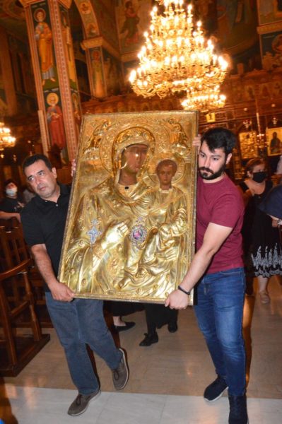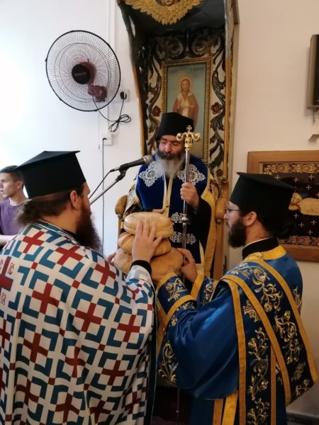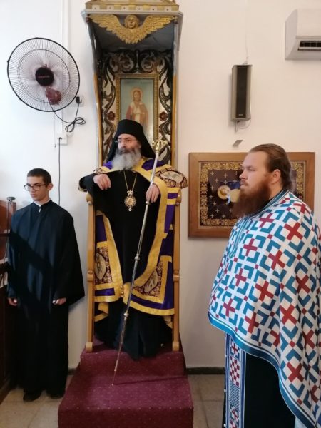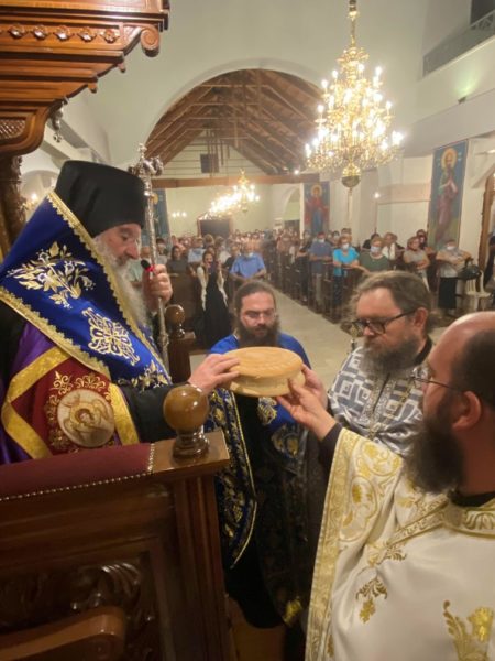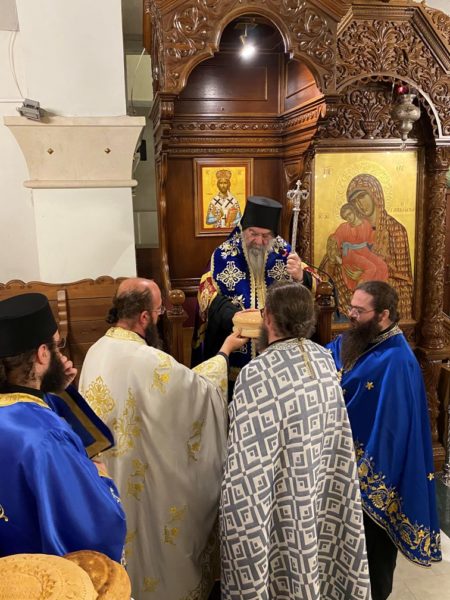 Την Τετάρτη το πρωί, ανήμερα της εορτής προεξήρχε της Πανηγυρικής Αρχιερατικής Θείας Λειτουργίας ο Πανιερώτατος Μητροπολίτης κ. Αθανάσιος, ενώ μαζί του συλλειτούργησαν ο πρωτοσύγκελος της μητροπόλεως π. Ισαάκ, καθώς και ιερείς του ναού.