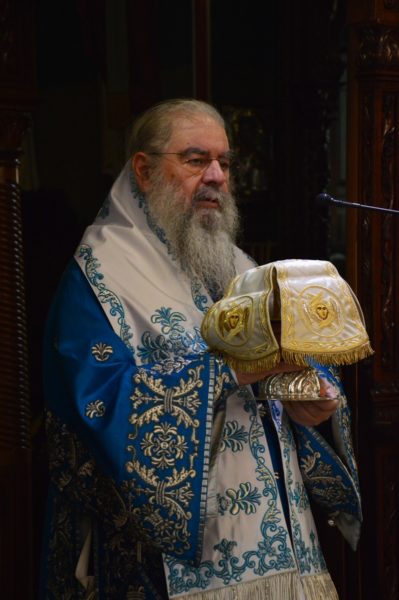 Τον Πανηγυρικό Εσπερινό στον Μητροπολιτικό Ναό ετέλεσε ο πανοσολογιώτατος Αρχιμανδρίτης π. Φιλόθεος, πλαισιούμενος από οι ιερείς της μητροπόλεως.