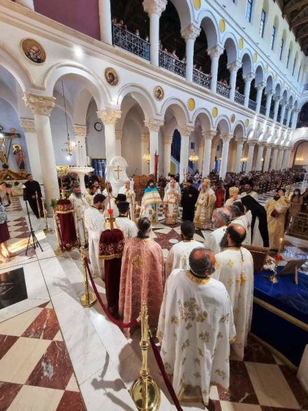 Της Πολυαρχιερατικής Θείας Λειτουργίας προεξήρχε ο Πανιερώτατος Μητροπολίτης Λεμεσού κ. Αθανάσιος και συλλειτούργησαν ο Σεβασμιώτατος Μητροπολίτης Κανάγκας κ. Θεοδόσιος (Πατριαρχείο Αλεξανδρείας) και ο Θεοφιλέστατος Επίσκοπος Αμαθούντος κ. Νικόλαος.
