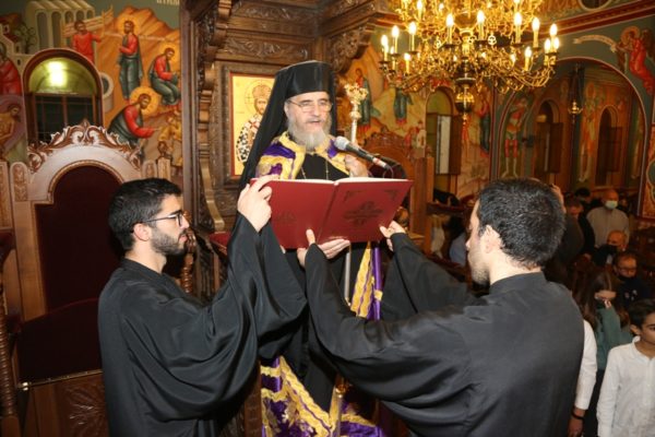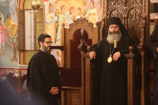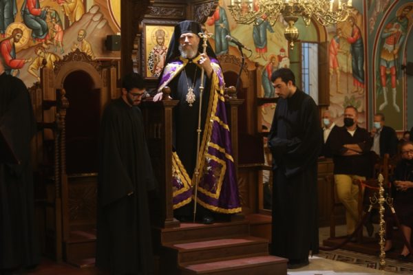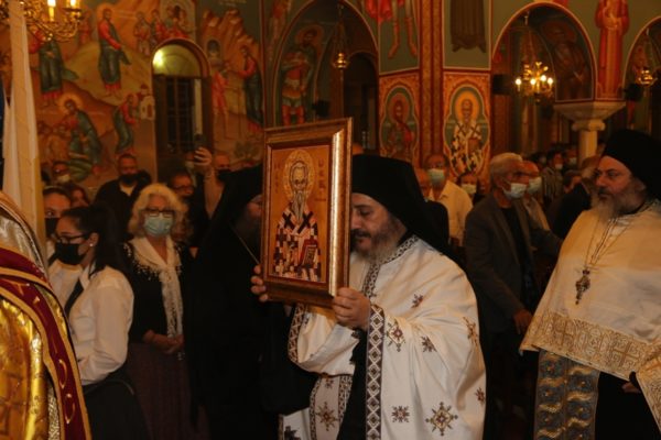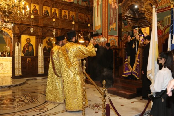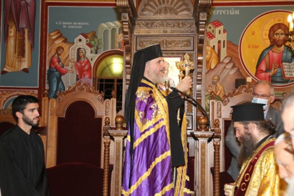 Του Πανηγυρικού Εσπερινού χοροστάτησε ο Θεοφιλέστατος Επίσκοπος Νεαπόλεως κ. Πορφύριος συγχοροσταούντων του Πανιερωτάτου Μητροπολίτου Λεμεσού κ. Αθανασίου και του Θεοφιλεστάτου Επισκόπου Αμαθούντος κ. Νικολάου.