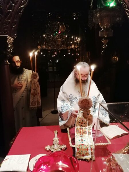 Την Δευτέρα το πρωί ο Πανιερώτατος Μητροπολίτης τέλεσε την θεία Λειτουργία στο χωριό Σπιτάλι, όπου ο ναός τιμάται στην Αγία Άννα.