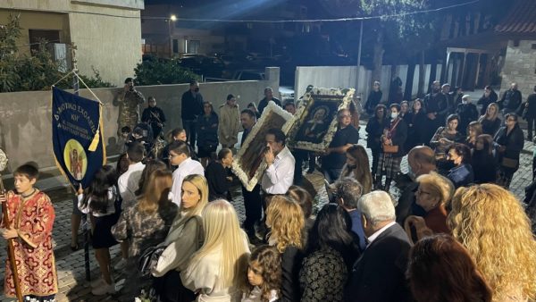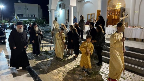 Με το πέρας του Πανηγυρικού Εσπερινού ακολούθησε λιτανεία πέριξ του ναού, η οποία κατέληξε στο παρεκκλήσιο της Οσίας Ματρώνας της Αομμάτου και Θαυματουργού, που βρίσκεται δίπλα από τον Ναό του Αρχαγγέλου Μιχαήλ. Ο Πανιερώτατος τέλεσε την Ακολουθία του Αγιασμού και τα Θυρανοίξια του Παρεκκλησίου.