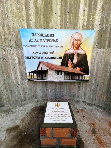 Μετά το τέλος της Θείας Λειτουργίας, ο Πανιερώτατος συμπαραστατούμενος από τους ιερείς, τους ιεροψάλτες και τους πιστούς μετέβησαν στο ανεγειρόμενο παρεκκλήσιο της Αγίας Ματρώνης, που βρίσκεται δίπλα από τον ναό του Αρχαγγέλου Μιχαήλ.
