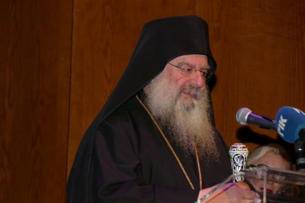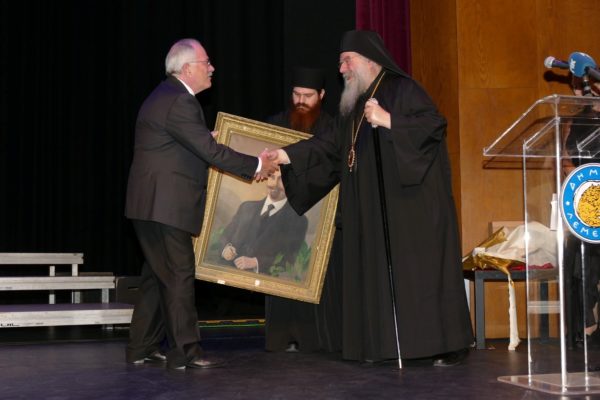 Ο Πανιερώτατος ευχαρίστησε για την τιμή λέγοντας μεταξύ άλλων: “Η εκκλησία τιμάται σήμερα και η εκκλησία είναι αυτή η οποία στηρίζει όλους μας και είναι μητέρα μας και είναι η τροφός και κηδεμόνας της κάθε πολιτείας και κάθε πατρίδας, αυτό είναι πολύ σημαντικό ιδιαίτερα στις μέρες μας. Τα έργα τα οποία είδατε, τα οποία έγιναν πράγματι, όλα αυτά είναι έργα του Θεού, δεν είναι έργα δικά μου, είναι έργα του Θεού. Ευχαριστούμε τον Θεό τον Πανάγαθο ο οποίος έκανε αυτά τα έργα όλα εις δόξα δική Του. Ευχαριστώ ιδιαίτερα όλους τους συνεργάτες μου που διακονούν το έργο της τοπικής μας Εκκλησίας.”