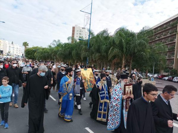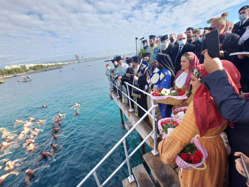 Ο Πανιερώτατος Μητροπολίτης Λεμεσού κ. Αθανάσιος προεξήρχε της Αρχιερατικής Θείας Λειτουργίας και τέλεσε τον Μέγα Αγιασμό στον ιερό καθεδρικό ναό Αγίας Νάπας. Στη συνέχεια, κλήρος και λαός πορεύθηκαν στην αποβάθρα του παλιού λιμανιού όπου πραγματοποιήθηκε η κατάδυση του Τιμίου Σταυρού στη θάλασσα.