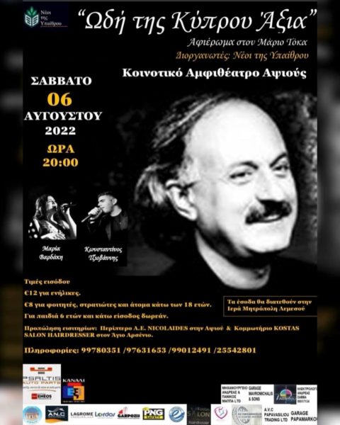 Ο Πανιερώτατος Μητροπολίτης Λεμεσού κ. Αθανάσιος παρέστη στη μουσική εκδήλωση «Ωδή της Κύπρου Αξία», αφιέρωμα στον Μάριο Τόκα, η οποία έλαβε χώρα στο κοινοτικό αμφιθέατρο Αψιούς.