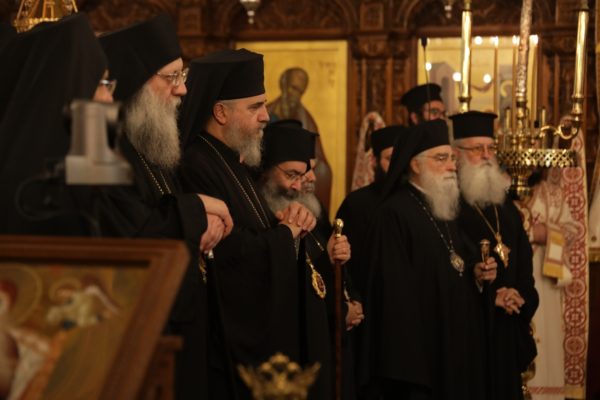 Στο ιερό βήμα παρέστησαν συμπροσευχόμενοι ο Σεβασμιώτατος Μητροπολίτης Βόστρων κ. Τιμόθεος, οι Θεοφιλεστάτοι Επισκόποι Αμαθούντος κ. Νικόλαος, Νεαπόλεως κ. Πορφύριος και Λήδρας κ. Επιφάνιος.