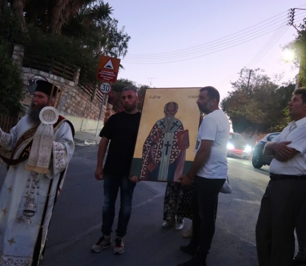 Στο τέλος έγινε Λιτανεία της ιεράς εικόνος και του ιερού Λειψάνου του Αγίου στους δρόμους της κοινότητας.