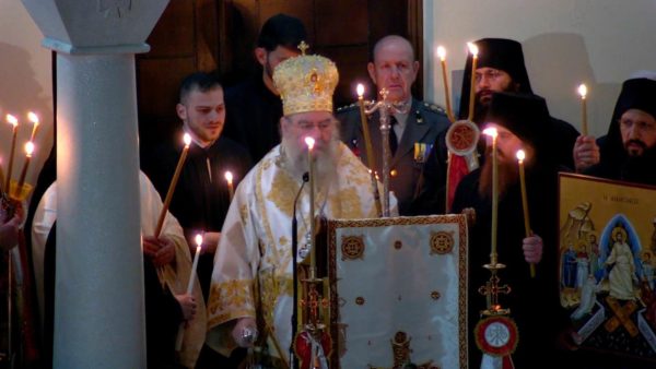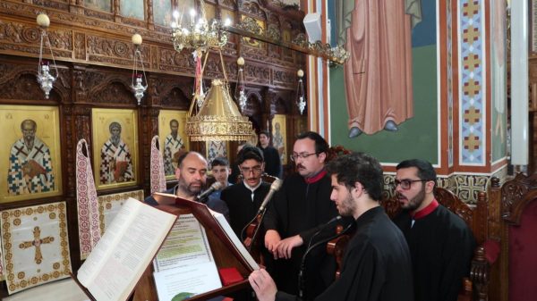 Κατά τη διάρκεια του Εσπερινού, το αναστάσιμο μήνυμα του Ευαγγελίου ακούστηκε κατά την παράδοση σε πολλές ξένες γλώσσες. Στη συνέχεια, ακολούθησε λιτανεία πέριξ του ιερού ναού. Μετά την απόλυση του Εσπερινού ο Πανιερώτατος μοίρασε το πασχαλινό αυγό και αντάλλαξε πασχαλινές ευχές με τους πιστούς.