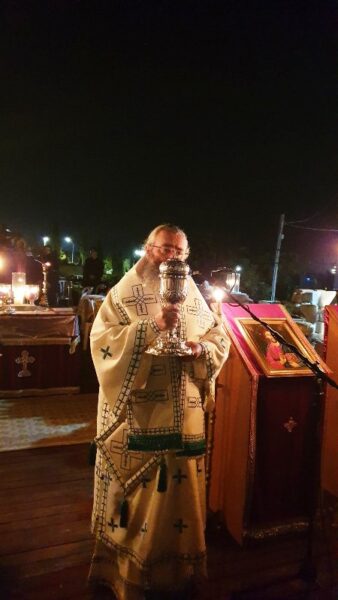 Της Ιεράς αγρυπνίας προεξήρχε ο Θεοφιλέστατος Επίσκοπος Νεαπόλεως κ. Πορφύριος και συλλειτούργησε ο Θεοφιλέστατος Επίσκοπος Αμαθούντος κ. Νικόλαος. Επίσης συμμμετείχαν ο Πρωτοσύγκελος της Ιεράς Μητροπόλεως π. Ισαάκ, ιερείς και πλήθος κόσμου.