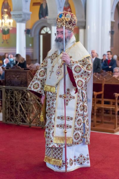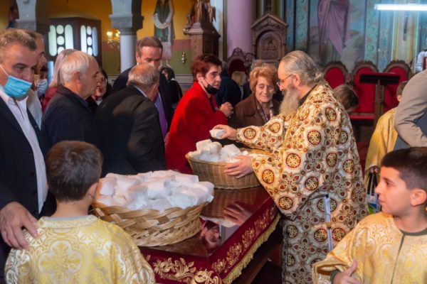 Στο τέλος της Θείας Λειτουργίας ευλόγησε την Βασιλόπιτα και την μοίρασε στους πιστούς.