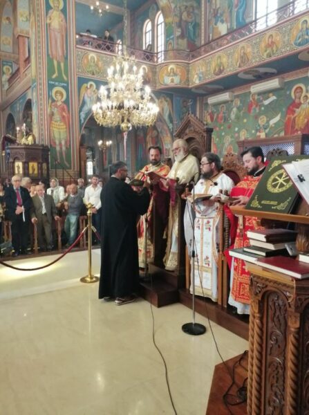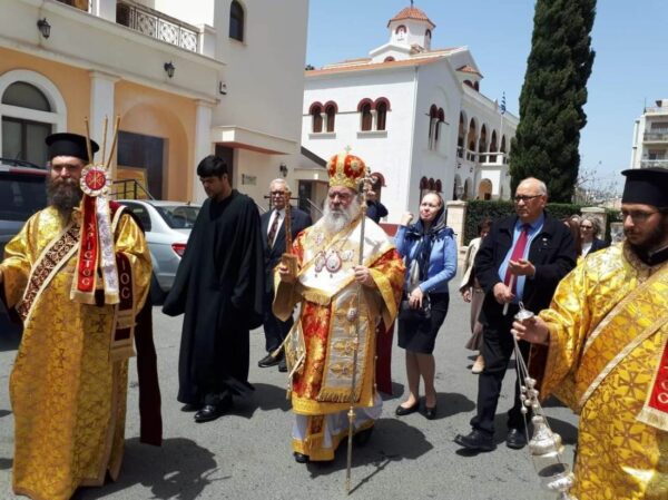 Τελέστηκε το πρωί της Κυριακής ο Μεγάλος Εσπερινός του Πάσχα προεξάρχοντος του Πανιερωτάτου Μητροπολίτου Λεμεσού κ. Αθανασίου και συγχοροστατούντος του Θεοφιλεστάτου Επισκόπου Αμαθούντος κ. Νικολάου, με τη συμμετοχή ιερέων της Μητροπολιτικής περιφέρειας. Οι Αρχιερείς και οι ιερείς ενδεδυμένοι τα ιερά άμφια κατήλθαν από το συνοδικό του Μητροπολιτικού Οίκου στο ναό όπου και άρχισε ο Μέγας Εσπερινός. Το Αναστάσιμο Ευαγγέλιο ανεγνώσθη στα Ελληνικά, Λατινικά, Αγγλικά, Γερμανικά, Σουαχίλι, Βουλγάρικα, Τουρκικά, Σερβικά, Ρουμανικά και στα Ομηρικά. Μετά το πέρας του Εσπερινού ακολούθησε λιτανεία πέριξ του ναού και στη συνέχεια ο Πανιερώτατος και ο Θεοφιλέστατος αντάλλαξαν τις πασχαλινές ευχές με τους πιστούς.