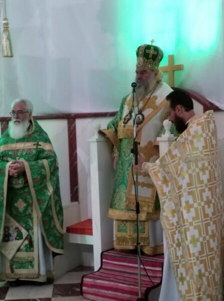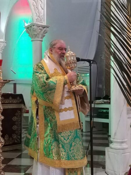 Επίσης, στον ιερό ναό Αγίων Θεοπατόρων Ιωακείμ και Άννης λειτούργησε και κήρυξε το θείο λόγο ο Θεοφιλέστατος Επίσκοπος Νεαπόλεως κ. Πορφύριος.