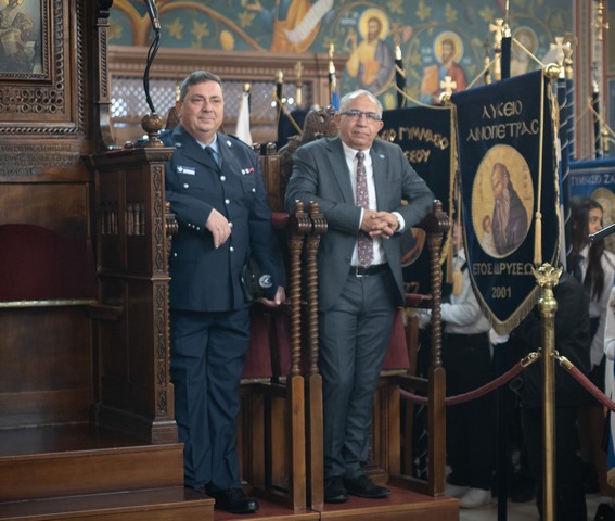 Στη Θεία Λειτουργία παρευρέθηκαν μεταξύ άλλων η Πρώτη Κυρία της Κυπριακής Δημοκρατίας κα Φιλίππα Καρσερά Χριστοδουλίδου, ο πρόεδρος του ΕΟΑ κ. Γιάννης Τσουλόφτας, ο Δήμαρχος της πόλεως κ. Γιάννης Αρμεύτης, Βουλευτές, Δημοτικοί σύμβουλοι, εκπρόσωποι του Στρατού και της Αστυνομικής Διεύθυνσης Λεμεσού, σημαιοφόροι μαθητές από όλα τα σχολεία της πόλεως μας, άλλοι επίσημοι και πλήθος κόσμου.