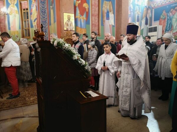 Στην Αγρυπνία πλαισίωσαν τον Μητροπολίτη μας ο πρωτοσύγκελος της μητροπόλεως αρχ. Ισαάκ, ο εφημέριος της ρωσικής εκκλησίας ο πρωτ. Παύλος Ποβαλιάεφ, ο πρωτ. Σάββας Μιχαηλίδης, ο πρεσβ. Παναγιώτης Ελπιδοφόρου και ο διάκονος π. Παύλος Χριστοδουλίδης.