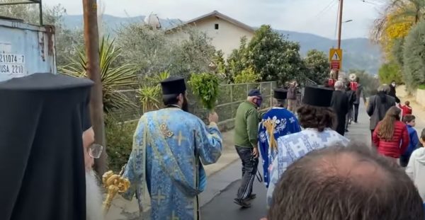 Ακολουθία και τάξις του Μεγάλου Αγιασμού και καθαγιασμός των υδάτων του Κλάριου ποταμού στη Σολέα από τον Ιερό Ναό Αγίας Μαρίνας Ευρύχου, χοροστατούντος του Μητροπολίτου Μόρφου κ. Νεοφύτου (06.01.2021). Ο Πανιερώτατος βαδίζοντας προς τα Ύδατα, ευλογεί τον κόσμο αλλά και τις τοπικές αστυνομικές δυνάμεις.