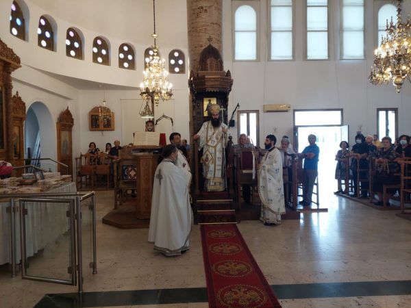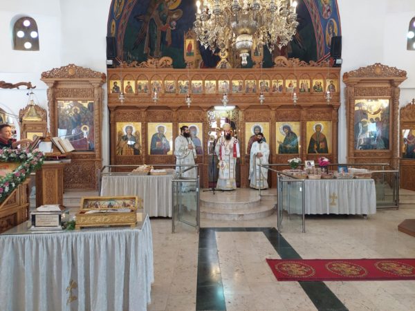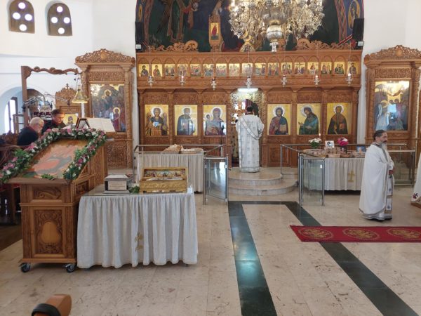 Ο Ναός υποδέχθηκε τα Ιερά Λείψανα της Αγίας Μαρίνας που φυλάσσονται στην Ιερά Μονή Πανάχραντου της Άνδρου και τα κόμισαν οι πατέρες π. Ευμένιος και π. Φιλάρετος.