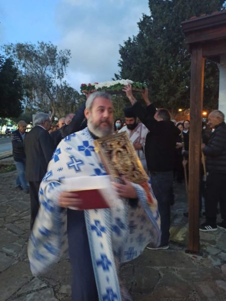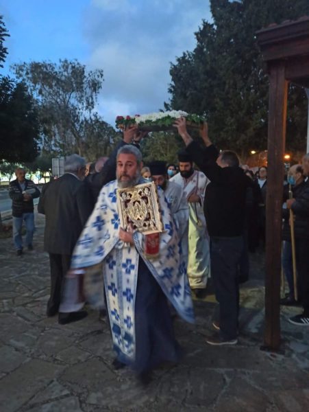 Της ακολουθίας του Πανηγυρικού Εσπερινού χοροστάτησε ο Πανιερώτατος Μητροπολίτης Πάφου κ. Τυχικός.