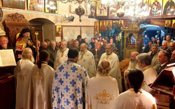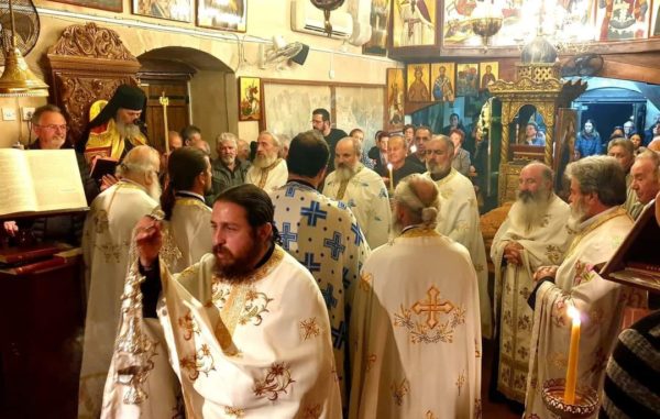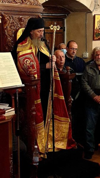 Κατά τον Εσπερινό, που τελέστηκε το απόγευμα της Τετάρτης 6 Δεκεμβρίου, χοροστάτησε και κήρυξε τον Θείο Λόγο ο Θεοφιλέστατος Επίσκοπος Αρσινόης και Ηγούμενος της Ιεράς Μονής Παναγίας Χρυσορρογιατίσσης, κ. Παγκράτιος. Ακολούθησε λιτάνευση της εικόνος και μέρους των Ιερών Λειψάνων του Αγίου Αμβροσίου στους δρόμους της κοινότητας.