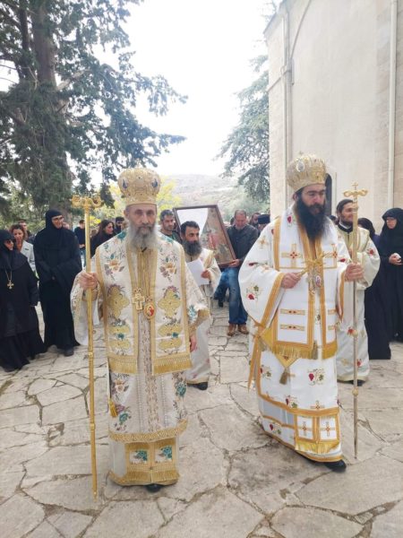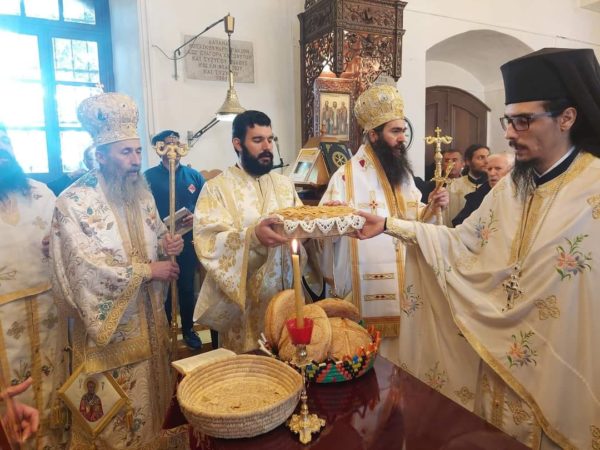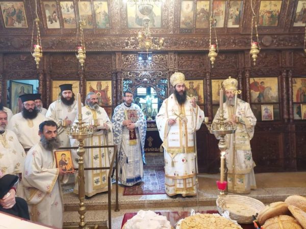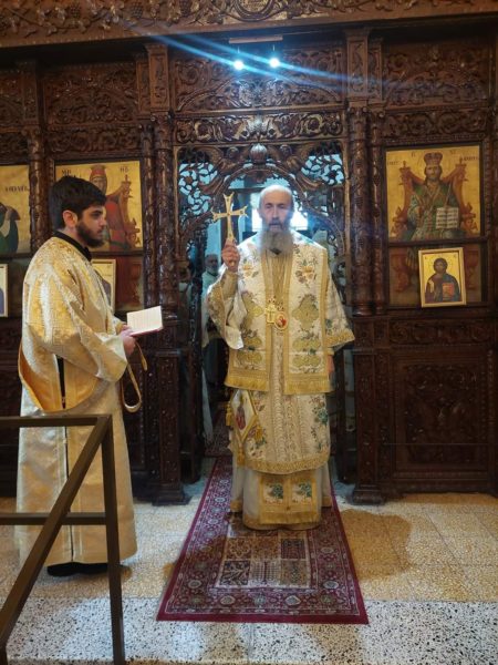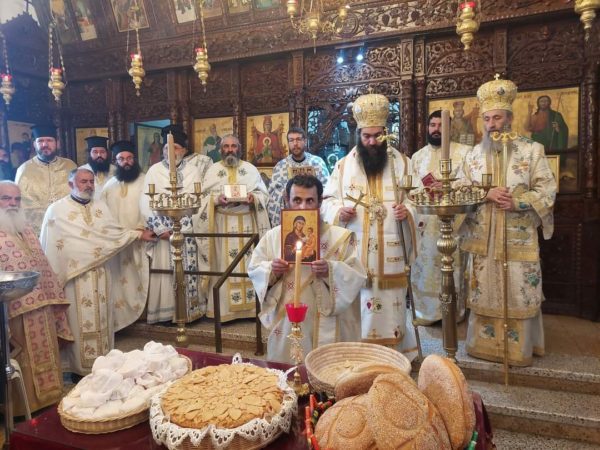 Στην Πανηγυρική Πολυαρχιερατική Θεία Λειτουργία προέστη ο εορτάζων Μητροπολίτης κ. Τυχικός, επικουρούμενος από τον Θεοφιλέστατο Χωρεπίσκοπο Αρσινόης κ. Παγκράτιο, καθώς και από αρκετούς ιερείς και διακόνους.