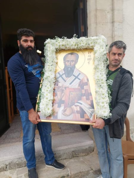 Κατά τον πατρικό λόγο του ο Πανιερώτατος Μητροπολίτης Πάφου κ. Τυχικός αναφέρθηκε στη ζωή και την δράση του Αποστόλου Τυχικού, ο οποίος ακολούθησε πιστά τον Απόστολο των Εθνών Παύλο και συνέβαλε στη διάδοση του Χριστιανισμού στο νησί. Ακολούθησε λιτανεία της Εικόνας και των Ιερών Λειψάνων του Αγίου Αποστόλου Τυχικού.