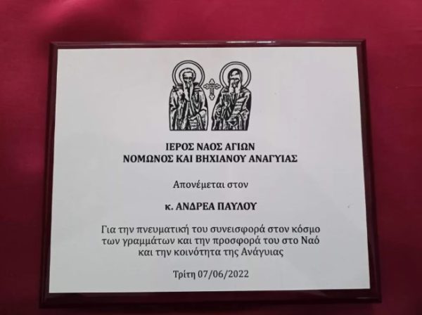 Aγιασμός και παρουσίαση βιβλίου για την κοινότητα της Ανάγυιας