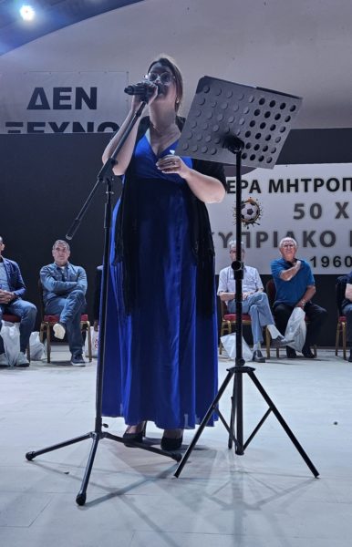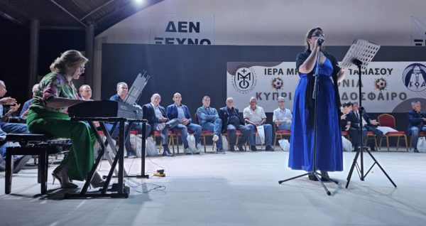 Η εκδήλωση ολοκληρώθηκε με τραγούδια από την κα Κατερίνα Παπαϊακώβου και στο πιάνο την κα Μαρία Χριστοδουλίδου, μαέστρο της χορωδίας Ταμασέων Ωδές.