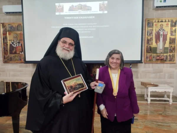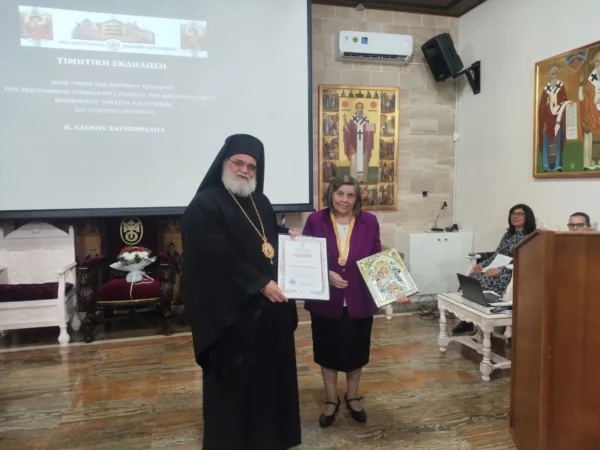 Ακόμη, πρόσφεραν αναμνηστικά δώρα στην Ελένη ο Πανιερώτατος και η Συντονιστική Επιτροπή των Χριστιανικών Συνδέσμων.