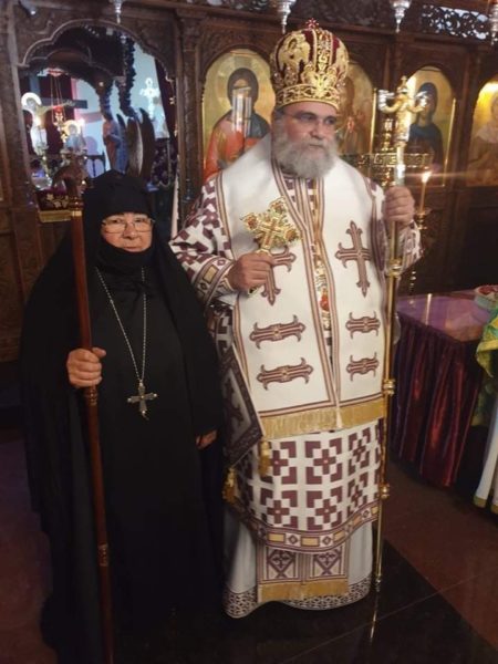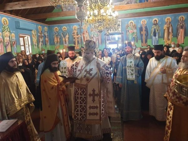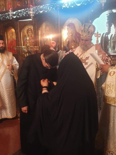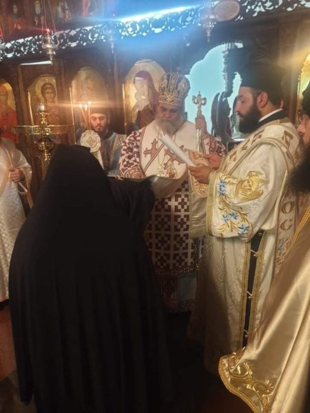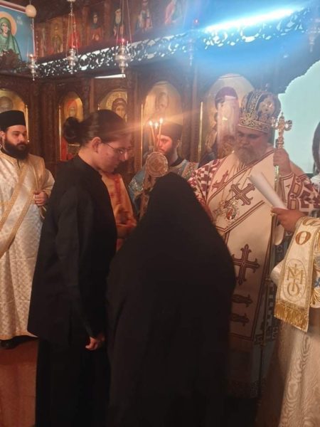 Επίσης, στο τέλος της ακολουθίας του όρθρου, ο Πανιερώτατος ανέγνωσε ευχή για την έναρξη της μοναχικής δοκιμασίας δεσποινίδα Ανδριανή.