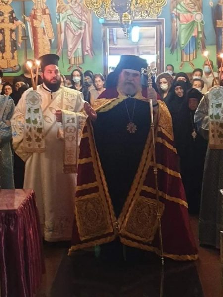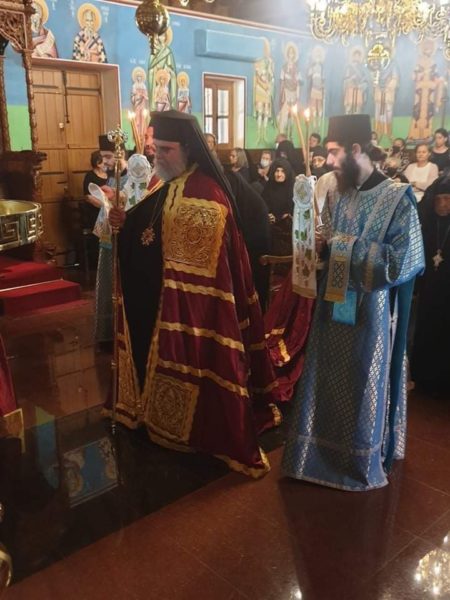 Τον Πανιερώτατο πλαισίωναν ο πνευματικός της Μονής, Πανοσιολογιώτατος Αρχιμανδρίτης Ηρακλείδιος Κλεάνθους, ο Πρωτοσύγκελος της Μητροπόλεως, Πρωτοπρεσβύτερος Θεόδωρος Στυλιανού, ο Ιερομόναχος Πορφύριος από το Ιερό Μητροπολιτικό Ησυχαστήριο Οσίου Αββακούμ Φτερικουδίου, ο πατήρ Κυριακός Ευθυμίου, ο Αρχιδιάκονος Ραφαήλ Μισιαούλης, και οι Ιεροδιάκονοι Αρσένιος, Ελπίδιος και Φιλούμενος.