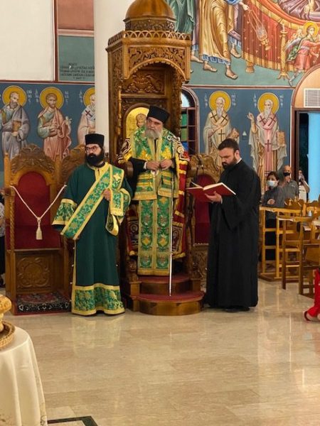 Τον Πανιερώτατο πλαισίωναν ο Γενικός Αρχιερατικός Επίτροπος Αρχιμανδρίτης Νεκτάριος Μπακόπουλος, κληρικοί της μητροπόλεως αλλά και από άλλες Μητροπόλεις που έλκουν την καταγωγή τους από τον Λυθροδόντα.