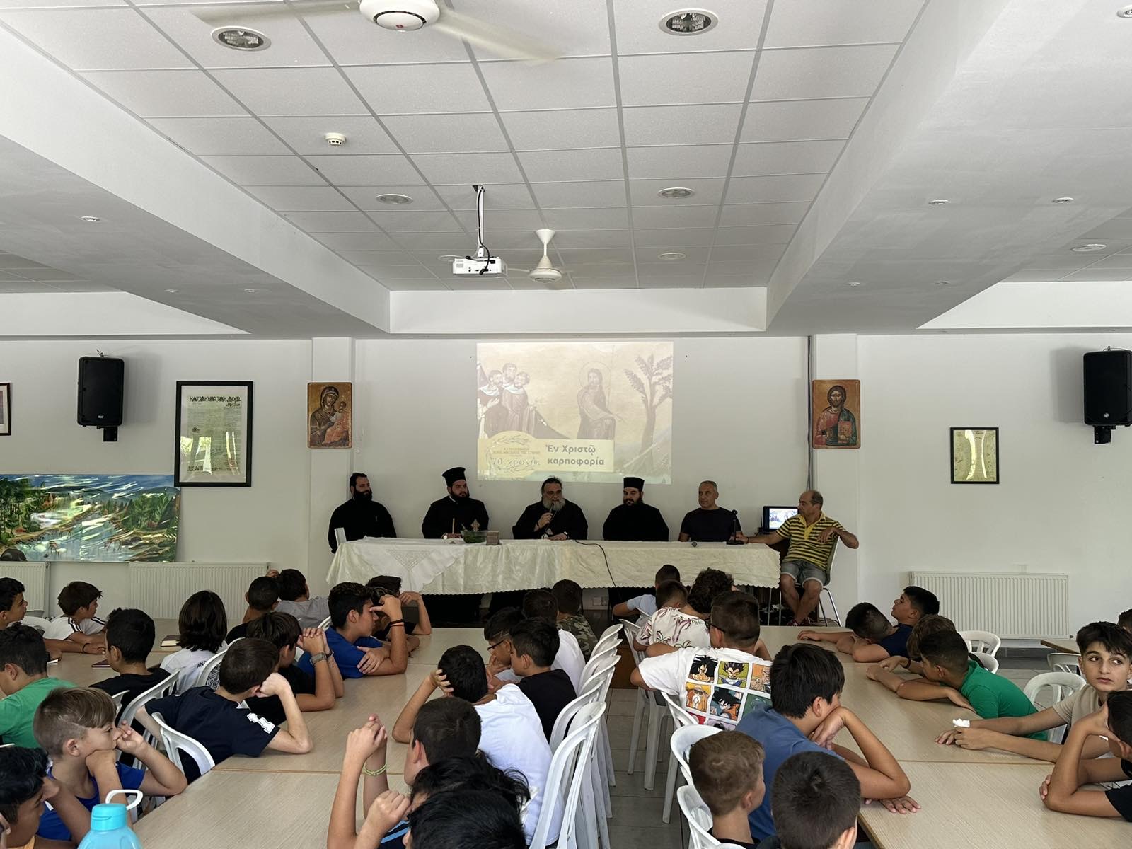 Ο Πανιερώτατος μίλησε κατάλληλα στα παιδιά αναφερόμενος στο σύνθημα της Κατασκήνωσης «η εν Χριστώ καρποφορία». Τα προέτρεψε να χαρούν την αναστροφή των ημερών και όσα πνευματικά και ωφέλιμα προσφέρει η ζωή της κατασκήνωσης. Στη συνέχεια, αναπτύχθηκε μία εποικοδομητική συζήτηση σε κλίμα ιδιαιτέρως εγκάρδιο.