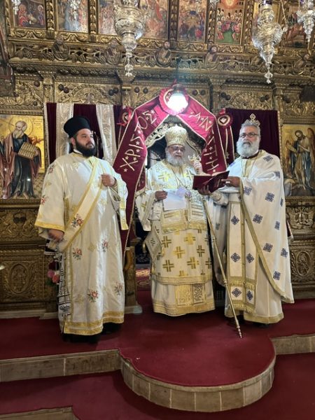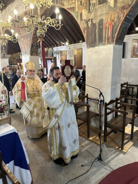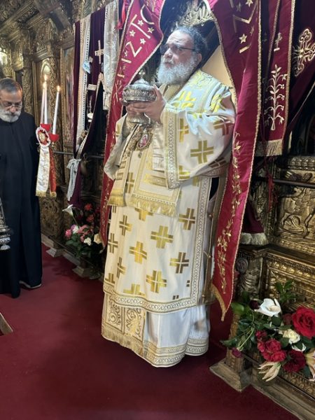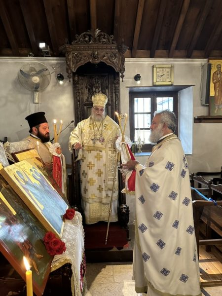 Τον Πανιερώτατο πλαισίωναν ο εφημέριος του Ναού, Πρωτοπρεσβύτερος Κωνσταντίνος Χατζηνικολάου και ο Αρχιδιάκονος π. Ραφαήλ Μισιαούλης.
