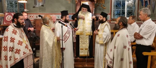 Τον Πανιερώτατο πλαισίωναν χθες οι Πρωτοπρεσβύτεροι Μάριος Ιωαννίδης και Νικόλαος Νυχίδης, ο Οικονόμος Σαμουήλ Κουσπογένης, ο Αρχιδιάκονος Ραφαήλ Μισιαούλης και ο Ιεροδιάκονος Αρσένιος Αθανασίου.